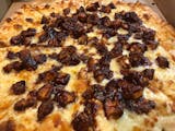 Topped with BBQ sauce, mozzarella, and chicken meat.